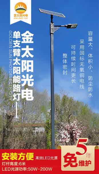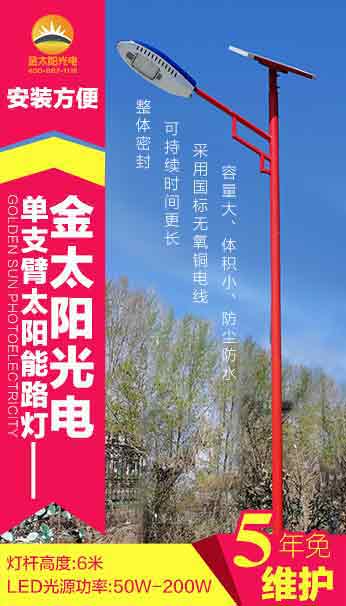 黑龍江金太陽(yáng)光電自主研發(fā)設(shè)計(jì)的新款太陽(yáng)能路燈上市,歡迎新老客戶前來(lái)淺談業(yè)務(wù)。